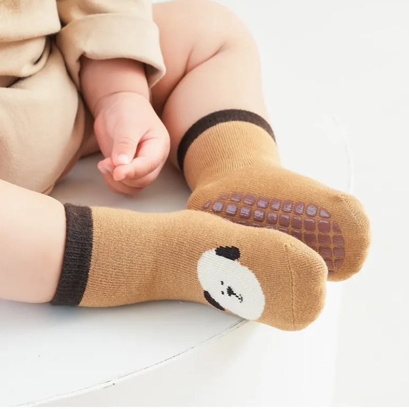Des chaussettes pensées pour les premiers pas, entre sécurité, confort et douceur.